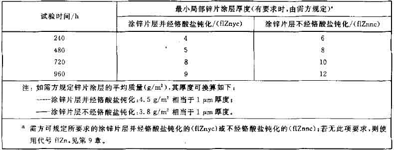 注在正常情況下,該涂鋅層中性鹽霧試驗時間應從表3選定,見第9章示例1。
